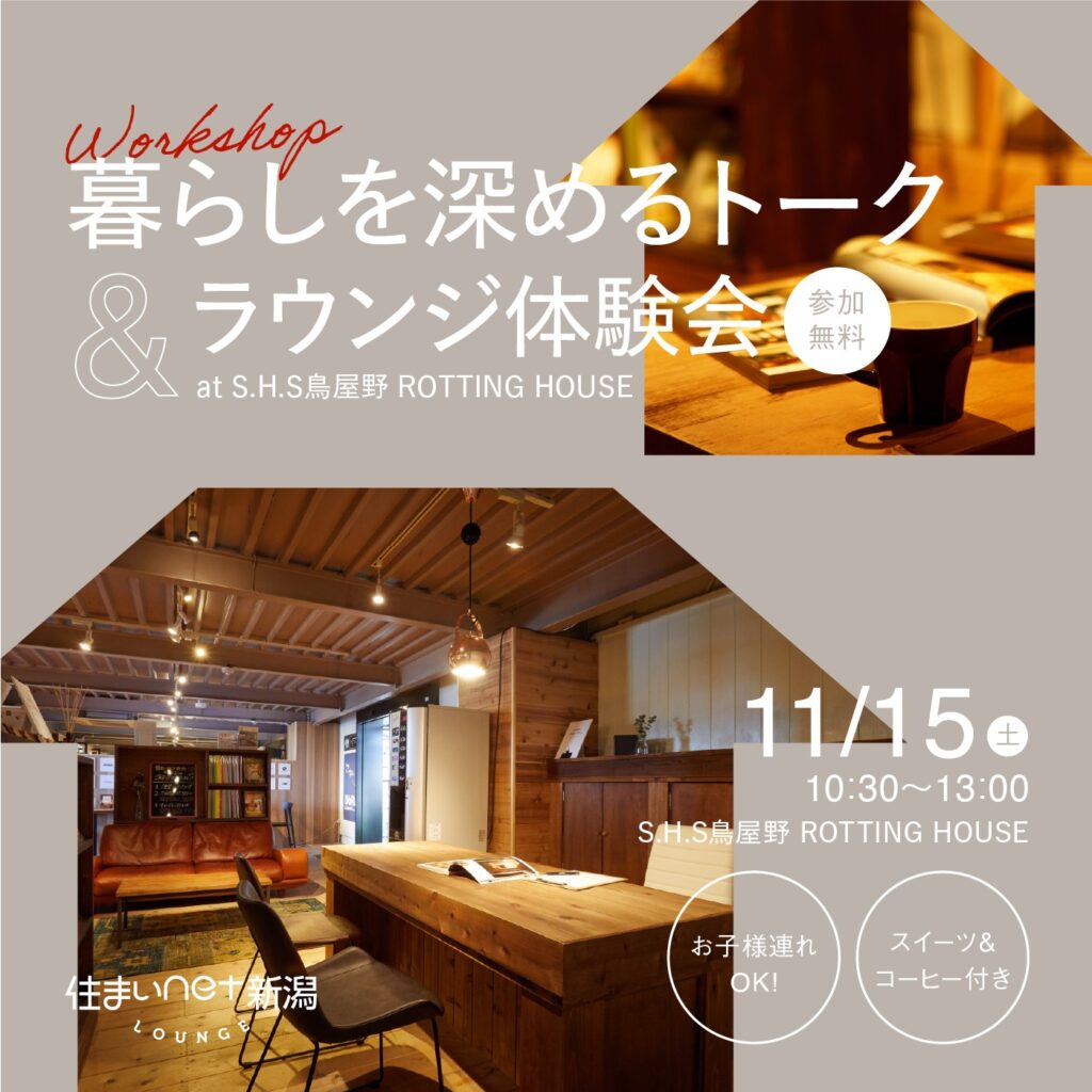 ※お電話でのお申込みに関しまして、住まいnet新潟ラウンジの営業時間外の場合は留守電にお名前とイベント参加をご希望の旨をお残しください。営業日にラウンジスタッフより折り返しのお電話をさせていただき、ご予約が確定となります。